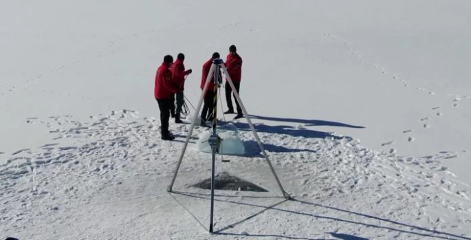 Erzurum İl Jandarma Komutanlığı SAK Tim Komutanlığı'na bağlı ekipler, Yakutiye İlçesi Konaklı bölgesinde bulunan Tekederesi Göleti'nin tamamen buz tutan yüzeyinde önce hızarla dalgıçların girebileceği yer açtı.