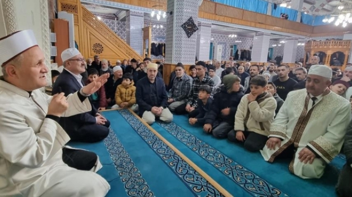 Namaz sonrası İl Müftümüz Yaşar Çapçı, cemaatimize hitaben kısa bir sohbet gerçekleştirdi. Namaz çıkışında protokol üyelerimiz vatandaşlarla bir araya gelerek Ramazan’ın bereketini paylaştı" denildi.
