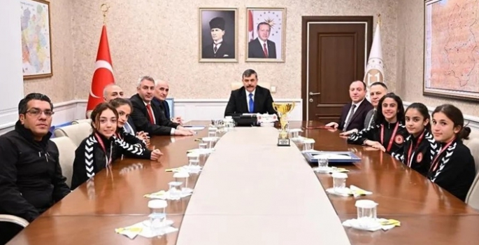 Okullar arası Kros Yıldız Kızlar Müsabakalarında hem takım hem de ferdi olarak Türkiye şampiyonu olan Zübeyde Hanım Ortaokulu öğrencilerini Valilik Toplantı Salonu’nda ağırlayan Vali Mustafa Çiftçi, genç yıldızlara başarı dileklerinde bulunarak çeşitli hediyeler verdi.