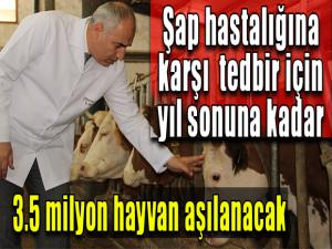 Türkiye'nin önemli tarım ve hayvancılık bölgeleri arasında yer alan Erzurumda hayvanları hastalıklardan korumak amacıyla her yıl uygulanan sonbahar dönemi şap aşısı çalışmaları başladı. Yıl sonuna kadar 3.5 milyon hayvanın aşılanacağı açıklanırken aşı yaptırmayan işletmeleri ise büyük para cezaları bekliyor.
