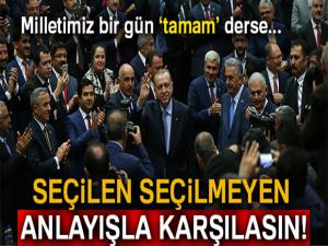 İTTİFAKIMIZA GÜÇ KATINAziz milletimden isteğim şudur, bizi bugüne kadar yalnız bırakmadınız, anayasa değişikliği yapacak şekilde cumhur ittifakına çok daha farklı güç katmanız olacaktır. Yeni dönemde istikrar ve güvenin temininde Meclis çoğunluğu önemlidir. Milletimizin desteğiyle Cumhur İttifakının anayasa değişikliği çıtasının üzerine çıkacağına inanıyorum. Dün iyi bildiğiniz kişi ve kesimlerin yarın rotayı nereye çevireceklerini kestirmeniz mümkün değildir. Hesabımız halkadır, hakkadır. Bugün de bu hesabı herkese karşı veririz. Biz ikiyüzlü iki dilli olmadık. Herkese aynı şeyleri söyledik ve söylemeye devam ediyoruz. (iha)