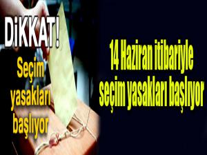 Yüksek Seçim Kurulu'nun (YSK) seçimler için belirlediği takvim uyarınca seçim yasakları yarın başlıyor. Propaganda, oy verme gününden önceki onuncu gün, yani yarın sabah başlayacak ve oy verme gününden önceki gün saat 18.00'de sona erecek. Seçime katılan siyasi partiler ve bağımsız adaylar, seçim propaganda süresinin sona ermesine kadar yazılı basında ilan ve reklam yoluyla veya internet sitesi açarak sözlü, yazılı veya görüntülü propaganda yapabilecek. Vatandaşların elektronik posta adreslerine gönderilecek mesajlarla, taşınabilir veya sabit telefonlarına sesli, görüntülü veya yazılı mesaj göndermek suretiyle propaganda yapılamayacak. Ancak siyasi partiler kendi üyelerine her zaman sesli, görüntülü veya yazılı mesaj gönderebilecek.