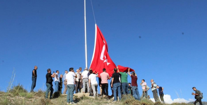 Direğe ay-yıldızlı Türk bayrağı dualar ve İstiklal Marşı eşliğinde çekildi.