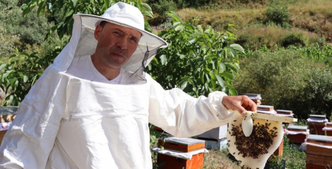 Şenkaya ilçesine bağlı Doğan Köy Mahallesinde ikamet eden profesyonel fitness ve vücut geliştirme antrenörü olan ve ek iş olarak da arıcılık yapan Alim Eser, 400 koloni arı ile tamamen organik bal üretiyor.
