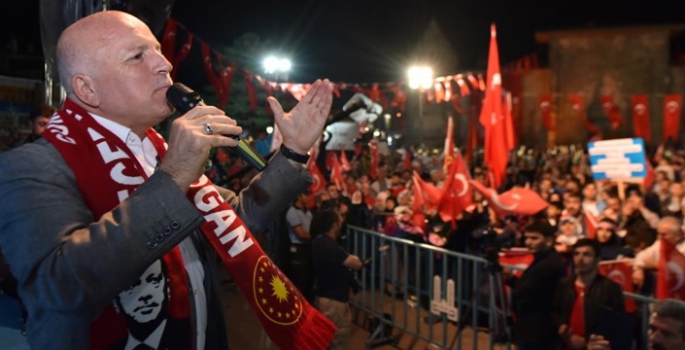 “15 Temmuz’da verdiğimiz mücadeleyi, o İstiklal gecesinin arkasındaki yüksek inanç ve ruhu bugün çok iyi anlamamız gerekir. Unutmayalım ki ecdadımıza bu yüksek ruhu kazandıran ‘Din-i mübin-i İslâm’dır. O günü hafızamızdan hiç çıkarmayacağız. Terörist başı satılmış FETÖ ve postallı işbirlikçilerinin bu aziz vatana kastını asla unutmadık ve unutmayacağız da… Tıpkı 93 Harbi’nde olduğu gibi sela ve ezan sesleriyle birlikte tek yürek olan Dadaşlar, o gecede hürriyet aşığı bu şehri yeniden ayağa kaldırarak Anadolu’nun milli refleksine adeta yön vermiştir. Bu vesileyle vatanımız, milletimiz, ezanımız ve ay yıldızlı bayrağımız uğruna şehit düşen tüm kahramanlarımızı saygı, sevgi, hürmet ve minnetle anıyorum. 15 Temmuz’da Hakk’a yürüyen şehitlerimize ve Erzurumlu Kahramanlarımız Yakup Sürücü, Murat Ellik, Edip Zengin, Oğuzhan Yaşar ve Beytullah Yeşilay’a Yüce Allah’tan rahmet niyaz ediyorum. Gazilerimize de sağlık ve sıhhat dileyerek, şükranlarımı sunuyorum. Bu şanlı toprakları kahramanlarımızın kanlarıyla vatanlaştıran tüm şehitlerimizin ruhları şad, makamları cennet olsun.”