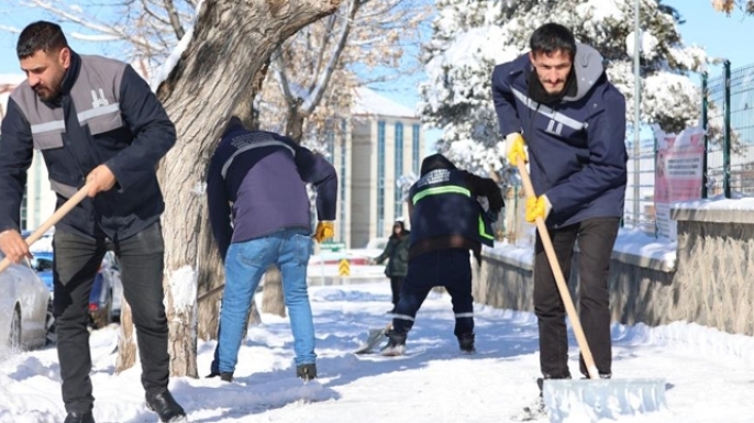 Kırsal alan, ana ve ara arterler, cadde ve sokaklarda karla mücadele çalışması yapan ekipler, araç ve yaya trafiğinin bulunduğu bölgeleri baştan aşağı temizliyor.