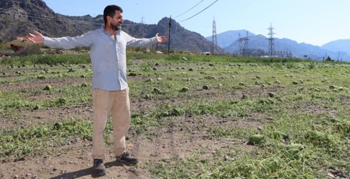 Aktürk, "Akşam yağan dolu, bütün emeğimi çöpe attı" dedi. Mahalle sakini Ekrem Korkmaz ise "Akşam yağan dolu nedeniyle ekili alanlarımız tamamen zarar gördü. Şu an çok mağduruz" diye konuştu.