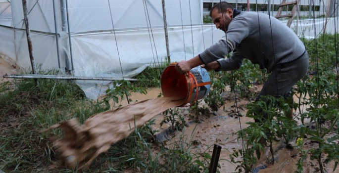Oltu ilçesinde akşam saatlerinde etkili olan sağanak yağış kısa sürede sele dönüşürken, sel suları sera ve ekili dikili alanlara zarar verdi.