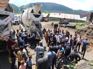 Şenkaya Belediyesinin yaptıracağı caminin temel atma töreninde emekli imam Abdullah Yıldırımın yaptığı duanın ardından türküler eşliğinde semah yaparak temele beton döküldü.