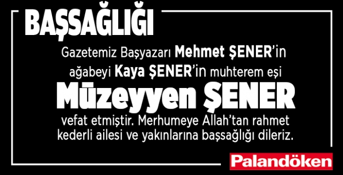 Gazetemiz Başyazarı Mehmet Şener'in ağabeyi Kaya Şener’in muhterem eşi Müzeyyen Şener hanımefendi vefat etmiştir. Merhumeye Allah’tan rahmet kederli ailesi ve yakınlarına başsağlığı dileriz.