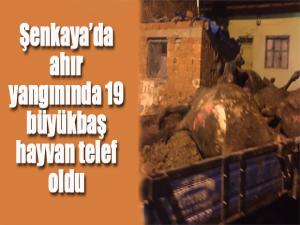 Alınan bilgiye göre, Şenkaya ilçesine bağlı Yanıkkaval mahallesinde elektrik kontağından çıkan yangında Veli Yıldıza ait ahır kullanılamaz hale geldi. Yangında ahırda bulunan 19 büyükbaş ve 20 kümes hayvanı telef oldu.