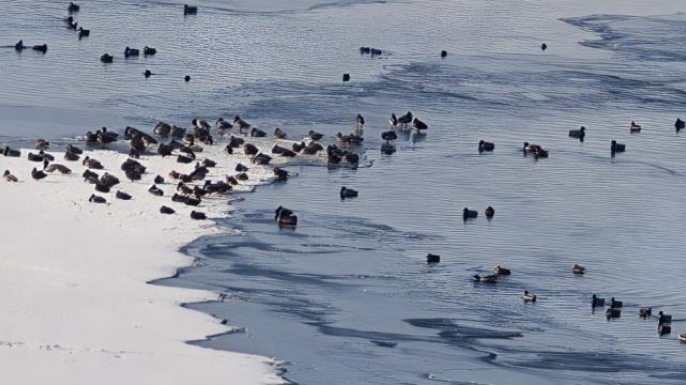 Göçmen kuşların önemli uğrak ve konaklama alanlarından biri olan HES Göleti aşırı soğuk nedeniyle donarken, kuşlar yaşamlarını sürdürebilmek için gölete akan suyun oluşturduğu küçük buzsuz alanlarda yiyecek arıyor. Zor şartlara rağmen hayatta kalmaya çalışan kuşların bu mücadelesi, soğuk havanın yaban hayatı üzerindeki etkisini gözler önüne serdi.