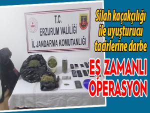 Aşkale Cumhuriyet Başsavcılığının koordinesinde Erzurum İl Jandarma Komutanlığı sorumluluk bölgesinde yürütülen emniyet ve asayiş hizmetleri kapsamında yapılan çalışmalarda, silah ve mühimmat kaçakçılığı ile uyuşturucu ve uyarıcı madde imal ve ticareti suçunu işledikleri tespit edilen ve takibi yapılan 3 şüpheli şahsa yönelik Erzurum İl Jandarma Komutanlığı unsurlarınca Aşkale ilçesinde operasyon düzenlendi.