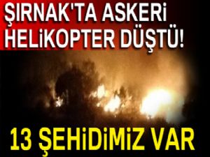 Şırnak'ın Uludere ilçesi Şenoba beldesinden kalkan ve içerisinde 23. Sınır Tümen Komutanı Tümgeneral Aydoğan Aydın ile albay ve yarbayların da bulunduğu helikopter düştü. İlk bilgilere göre, 13 şehidimizin olduğu öğrenilirken helikopterin Uludere-Beytüşşebap yüksek gerilim hattına çarpması sonucu düştüğü belirtildi.