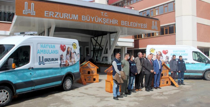 Erzurum Büyükşehir Belediyesi sokak hayvanlarını unutmadı. Özellikle kış mevsiminin sert geçtiği Erzurum’da dışarıda kalan yavru hayvanların barınması için toplanması ve yaralı hayvanlara en hızlı şekilde müdahale edilmesi adına Belediye tarafından 2 adet hayvan ambulansı hizmete sokuldu. Büyükşehir Belediyesi önünde tanıtımı yapılan ambulansların yanı sıra ustalar tarafından özel yapılan 60 adet kedi evi ise kentin belirli bölgelerindeki parklara yerleştirilecek.