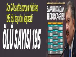 Sağlık Bakanlığının Covid-19 bilgilendirme sayfasında Türkiye'nin güncel korona virüs tablosu kamuoyuyla paylaşıldı. Tabloya göre son 24 saatte 195 kişi korona virüsten hayatını kaybetti, toplam can kaybı 14 bin 900'e yükseldi. Bugün toplam 174 bin 761 test yapılırken, 30 bin 402 yeni vaka sayısı, 6 bin 93 kişi de yeni hasta sayısı oldu.