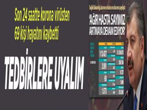 Sağlık Bakanlığının Covid-19 bilgilendirme sayfasında Türkiye'nin güncel korona virüs tablosu kamuoyuyla paylaşıldı. Tabloya göre son 24 saatte 69 kişi korona virüsten hayatını kaybetti, toplam can kaybı 9 bin 727'ye yükseldi. Bugün toplam 113 bin 427 test yapılırken, 2 bin 91 yeni vaka tanısı konuldu.