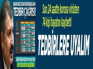 Sağlık Bakanlığının Covid-19 bilgilendirme sayfasında Türkiye'nin güncel korona virüs tablosu kamuoyuyla paylaşıldı. Tabloya göre son 24 saatte 74 kişi korona virüsten hayatını kaybetti, toplam can kaybı 9 bin 445'e yükseldi. Bugün toplam 116 bin 565 test yapılırken, bin 894 yeni vaka tanısı konuldu.
