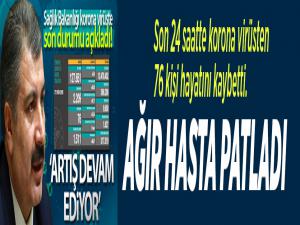 Sağlık Bakanı Fahrettin Koca, sosyal paylaşım sitesi Twitter hesabından yaptığı paylaşımda, Bugün tespit edilen 2 bin 209 yeni hastamız var. Ağır hasta sayımız bin 827'ye yükseldi. Ağır hasta ve aktif hasta sayısı düşmeden başarılı olamayız. Mücadele birlikteliği tedbirleri istisnasız uygulamaktan geçiyor. Salgına karşı organize olalım ifadelerine yer verdi.