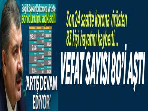 Sağlık Bakanlığının Covid-19 bilgilendirme sayfasında Türkiye'nin güncel korona virüs tablosu kamuoyuyla paylaşıldı. Tabloya göre son 24 saatte 83 kişi korona virüsten hayatını kaybetti, toplam can kaybı 10 bin 722'e yükseldi. Bugün toplam 145 bin 241 test yapılırken, 2 bin 436 yeni vaka tanısı konuldu.