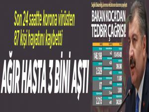 Sağlık Bakanlığının Covid-19 bilgilendirme sayfasında Türkiye'nin güncel korona virüs tablosu kamuoyuyla paylaşıldı. Tabloya göre son 24 saatte 87 kişi korona virüsten hayatını kaybetti, toplam can kaybı 11 bin 59'e yükseldi. Bugün toplam 146 bin 198 test yapılırken, 2 bin 529 yeni vaka tanısı konuldu.
