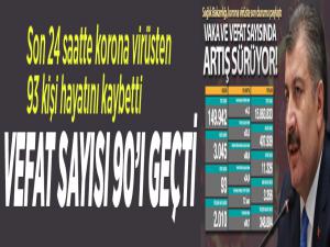 Sağlık Bakanlığının Covid-19 bilgilendirme sayfasında Türkiye'nin güncel korona virüs tablosu kamuoyuyla paylaşıldı. Tabloya göre son 24 saatte 93 kişi korona virüsten hayatını kaybetti, toplam can kaybı 11 bin 326'e yükseldi. Bugün toplam 149 bin 942 test yapılırken, 3 bin 356 yeni vaka tanısı konuldu.