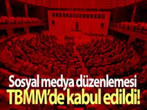 Sosyal medya düzenlemesi olarak bilinen internet ortamında yapılan yayınların düzenlenmesi ve bu yayınlar yoluyla işlenen suçlarla mücadele edilmesi hakkında kanunda değişiklik yapılmasına dair kanun teklifi TBMM Genel Kurulu'nda kabul edildi.