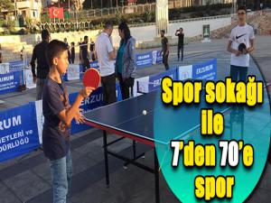 Gençlik ve Spor Bakanlığı Spor Hizmetleri Genel Müdürlüğünün yereldeki faaliyet ve projelerini başarı ile yürüten illerden biri olan Erzurum Gençlik ve Spor İl Müdürlüğü İl Spor Merkezleri kapsamındaki Spor Sokağı projesi ile sporu vatandaşın ayağına kadar götürüyor.
