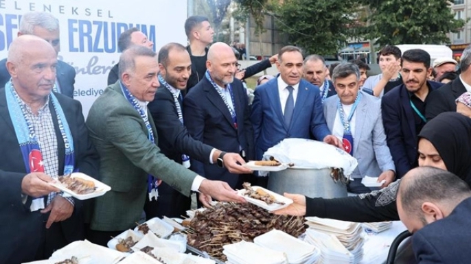 Konuşmaların ardından AK Parti İstanbul Milletvekili Süleyman Soylu ve Sultangazi Belediye Başkanı Abdurrahman Dursun vatandaşlara cağ kebabı ile kadayıf dolması dağıttı.