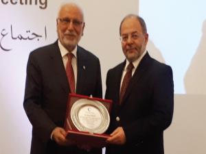Toplantının sonunda Suriye Türkmen Meclisi Onursal Başkanı Mehmet Şandır, Başbakan Yardımcısı Recep Akdağ'a plaket takdim etti.