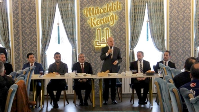 Erzurum protokolü, iş dünyası ve esnafın yoğun katılım gösterdiği toplantının ana gündem maddesi "Zekat ve Toplumsal Dayanışma" oldu.