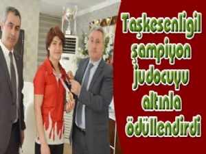 Eskişehir'de yapılan Görme Engelliler Judo Türkiye Şampiyonası'nda 57 kiloda Türkiye Şampiyonu olan Erzurum Gençliksporlu Zeynep Çelik'i tebrik eden Gençlik Hizmetleri ve Spor İl Müdürü Fuat Taşkesenligil, milli judocu altınla ödüllendirdi.