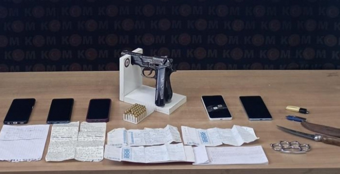 Şüpheliler hakkında 10 ayrı adreste arama işlemi neticesinde 1 adet ruhsatsız tabanca, 34 adet 9,19 mm çapında fişek, 3 adet dolu senet, 22 adet boş senet, 1 adet isim ve alacak bilgilerinin bulunduğu defter sayfası ve 6136 SKM suçu kapsamına giren 1 adet muşta ile 1 adet bıçak ele geçirildi.