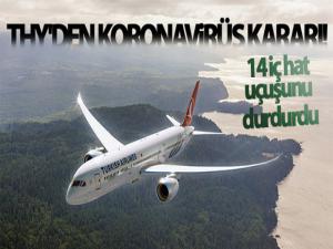 Türk Hava Yolları(THY) Genel Müdürü Bilal Ekşi, korana virüs salgınıyla mücadele kapsamında 30 büyükşehirden havayoluyla çıkışların da 15 gün süreyle geçici durdurulacağı gerekçesiyle THYnin İç hatlarda 14 büyükşehre yapılan kısıtlı sayıdaki iç hat seferlerinin 20 Nisan tarihine kadar iptal edileceğini açıkladı.