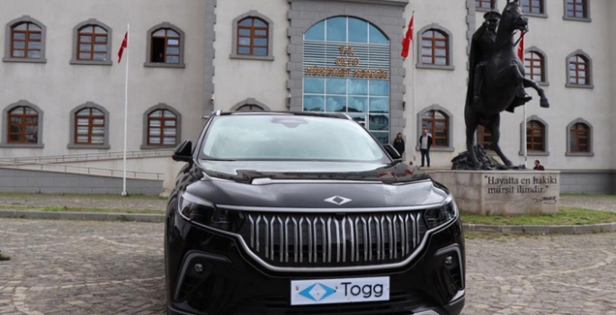 Daha sonra Oltu Kaymakamlığı binasının önüne çekilen Togg Oltu, vatandaşların yoğun ilgisiyle karşılandı.