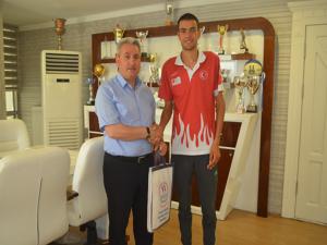 Taşkesenligil, Avrupa fatihi atlete hediye verdi. Ziyarette, TOHM Müdürü Murat Tanas, GHSİM Personel Müdürü Letif Arslan ile Gençlik Merkezleri Koordinatör Müdürü Zülküf Yılmaz da hazır bulundu.