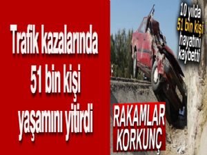 Türkiye'de son on yılda meydana gelen 1 milyon 518 bin trafik kazasında 44 bini olay yerinde olmak üzere toplamda 51 bin 869 vatandaş hayatını kaybetti.
