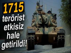 Harekatın başlangıcından itibaren etkisiz hale getirilen terörist sayısının bin 715 olduğu bildirildi.