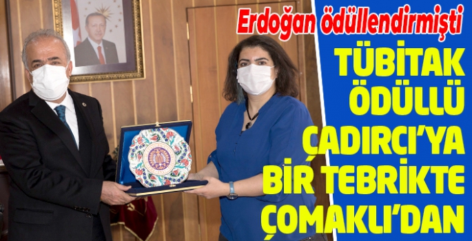 Törende ödülünü Cumhurbaşkanı Recep Tayyip Erdoğan’ın elinden alan Prof. Dr. Çadırcı, Rektör Çomaklı’ya gerçekleştirdiği çalışmalardan bahsetti.