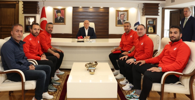 Erzurum'da UEFA eğitimine katılan futbol antrenörleri, Başkan Mehmet Sekmen’i ziyaret etti.