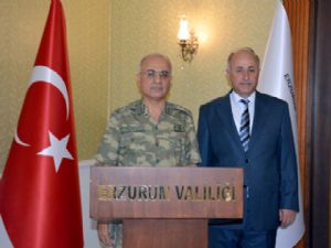 3. Ordu Komutanlığı Kurmay Başkanlığına atanan Tümgeneral Özoğlu, Erzurum Valisi Seyfettin Azizoğlu'nu makamında ziyaret etti.
