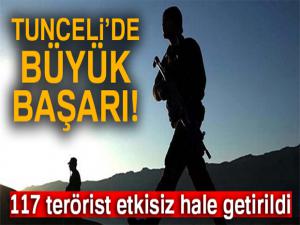 Tuncelide 2018 yılında şu ana kadar 3ü kırmızı listede 106sı ölü 117 terörist etkisiz hale getirildi, 70 bin mühimmat ele geçirildi, 122 sığınak imha edildi.