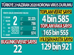 Sağlık Bakanlığından yapılan açıklamaya göre, son 24 saatte 22 kişi korona virüsten hayatını kaybetti, toplam can kaybı ise 4 bin 585'e yükseldi. Bugün toplam 32 bin 325 test yapılırken, 786 yeni vaka tanısı konuldu.