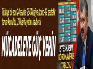 Sağlık Bakanı Fahrettin Koca, sosyal paylaşım sitesi Twitter hesabından yaptığı paylaşımda, Bugün tespit edilen 2 bin 343 yeni hastamız var. Ağır hasta sayımız artmaya devam ediyor. Salgının seyrini değiştirebilecek en önemli gücümüz tedbirlere uymak. Birlikte tedbirlere uyarsak virüsün yayılmasına fırsat vermemiş oluruz. Mücadeleye güç verin ifadelerine yer verdi.
