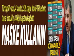 Sağlık Bakanı Fahrettin Koca, sosyal paylaşım sitesi Twitter hesabından yaptığı paylaşımda, Bugün tespit edilen 2.516 yeni hastamız var. Ağır hasta sayımız 2.740'a ulaştı. Bugün taburcu olan 2.000'den fazla iyileşen hastamız oldu. Zorunlu olmadıkça kalabalık ortamlardan uzak durun. Hijyene dikkat edin. Maske kullanın ifadelerine yer verdi.