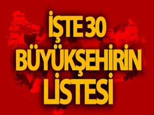 TÜRKİYE'DEKİ 30 BÜYÜKŞEHİR
