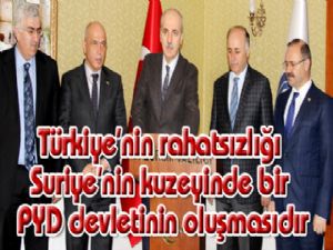 Üçüncüsü Türkiye Suriye'nin kuzeyinde Kürt kardeşlerimizin varlığından rahatsız değildir. Türkiye'nin rahatsızlığı Suriye'nin kuzeyinde bir PYD devletinin oluşmasıdır. Bu risk hem etnik temizliğin kapısını açar bölgedeki Arapların, Türkmenlerin o bölgeden uzaklaştırılmasını temin eder hem de maalesef bölgede daha çok çatışmanın kapısını aralar. Bölge barışına asla katkıda bulunmaz. Türkiye'nin Fırat Kalkanı operasyonunu yapmasının sebeplerinden birisi de budur. Yani orada boydan boya bir terör devletinin kurulması, terör örgütüne ait bir yapılanmaya Türkiye olarak asla rıza göstermediğimizi ortaya koyuyoruz."