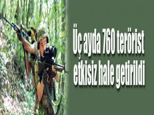 Ülkenin barış ve huzurunu bozmaya yönelik saldırılar düzenleyen terör örgütü mensuplarının peşini bırakmayan güvenlik güçleri, yurt içi ve dışındaki hava ve kara operasyonlarını aralıksız sürdürdü. Yaz aylarındaki operasyonlarda, aralarında örgütün sözde üst düzey sorumlularının da yer aldığı 760 terörist etkisiz hale getirildi.