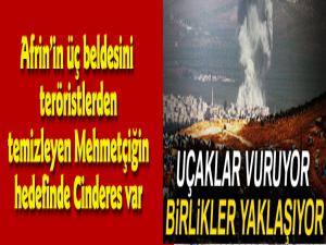 Mehmetçiğin kuşattığı Cinderes beldesinin merkezindeki terör örgütü hedefleri ise düzenlenecek meskun mahal operasyonu öncesinde Türk savaş jetleri tarafından yoğun şekilde vuruluyor. Cinderesten yükselen dumanlar sınırın Türkiye tarafındaki Hatayın Reyhanlı ilçesinden görülürken, komando ve özel harekat timlerinin her an operasyona başlayabileceği belirtiliyor. Raco beldesinden kaçan teröristlerin geldiği Cinderes, Afrinin en büyük beldesi. Bu arada Zeytin Dalı Harekatının 45inci gününde etkisiz hâle getirilen terörist sayısı 2 bin 795e yükseldi. 3ü belde merkezi, 105i köy, 6sı köy altı yerleşim ve 22i stratejik dağ veya tepe, biri YPG/PKKya ait üs olmak üzere 137 nokta da ele geçirildi.