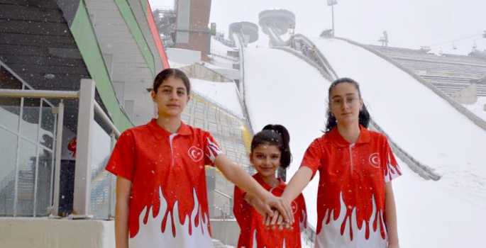 Erzurum Atlama Kulelerinde çalışmalarını sürdüren Aslıhan Güven (14), Elif Azra Şerefoğlu(12) ve Ravzanur Ekmekçi(13) Türkiye’yi Uluslararası arenada temsil etmek için çalışıyor.